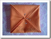Я делаю это на том одеяльце,на котором глажу потом: надо заколоть уголки квадратов к центру и отгладить.